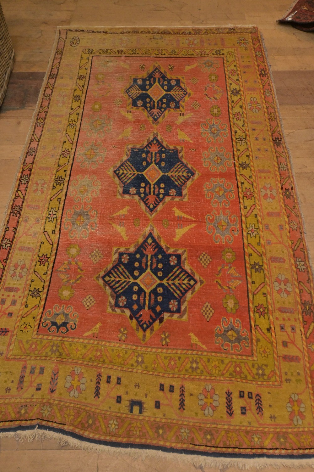 A VINTAGE PERSIAN STYLE RUG (A/F) (271 X 147 CM) (LEONARD JOEL DELIVERY SIZE: LARGE)