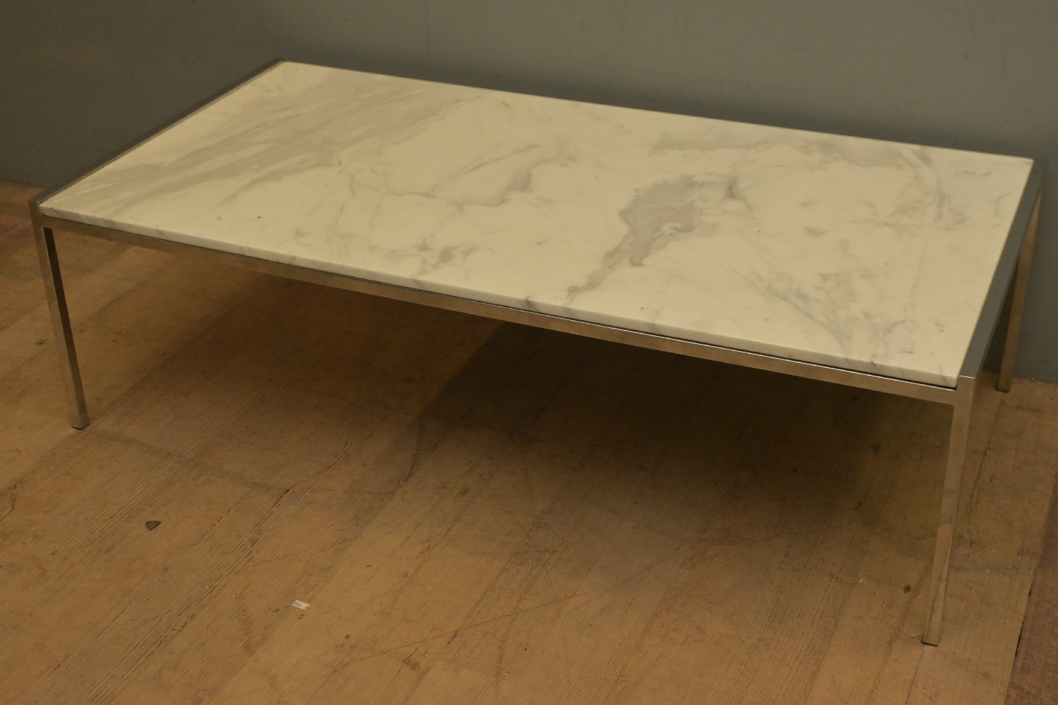A MODERN CHROME AND MARBLE TOP COFFEE TABLE (39H X 130W X 65D CM) (PLEASE NOTE THIS HEAVY ITEM MUST BE REMOVED BY CARRIERS AT THE CUSTOMER'S EXPENSE. LEONARD JOEL STAFF CANNOT ASSIST CARRYING THIS ITEM) (LARGE ITEM)