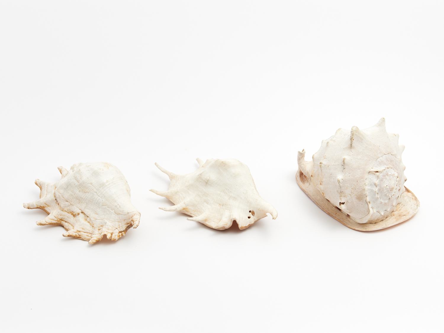 THREE LARGE DECORATIVE SHELLS L.23CM (LARGEST), LEONARD JOEL DELIVERY SIZE: SMALL