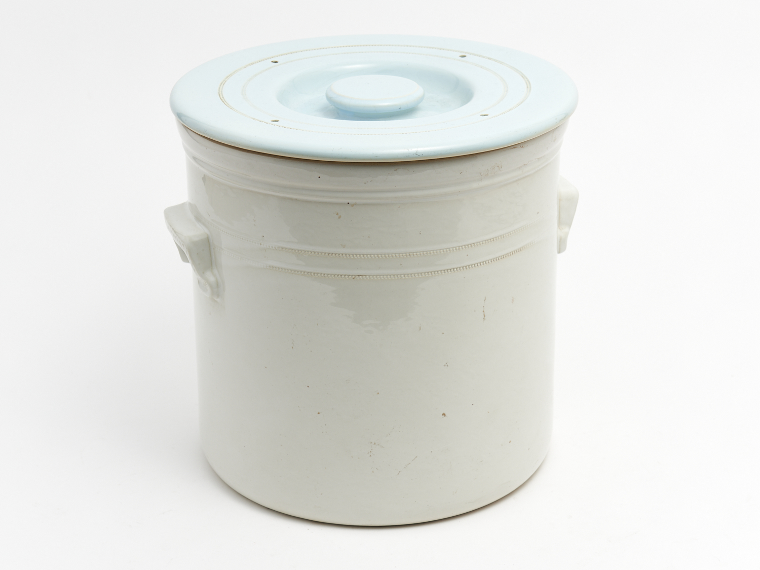A LARGE FOWLERWARE KITCHEN CROCK WITH LID, H.31CM, LEONARD JOEL DELIVERY SIZE: MEDIUM