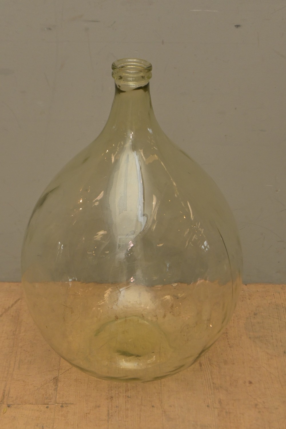 A LARGE CLEAR GLASS HANDBLOWN DEMIJOHN (65H X 40D CM) (LEONARD JOEL DELIVERY SIZE: LARGE)