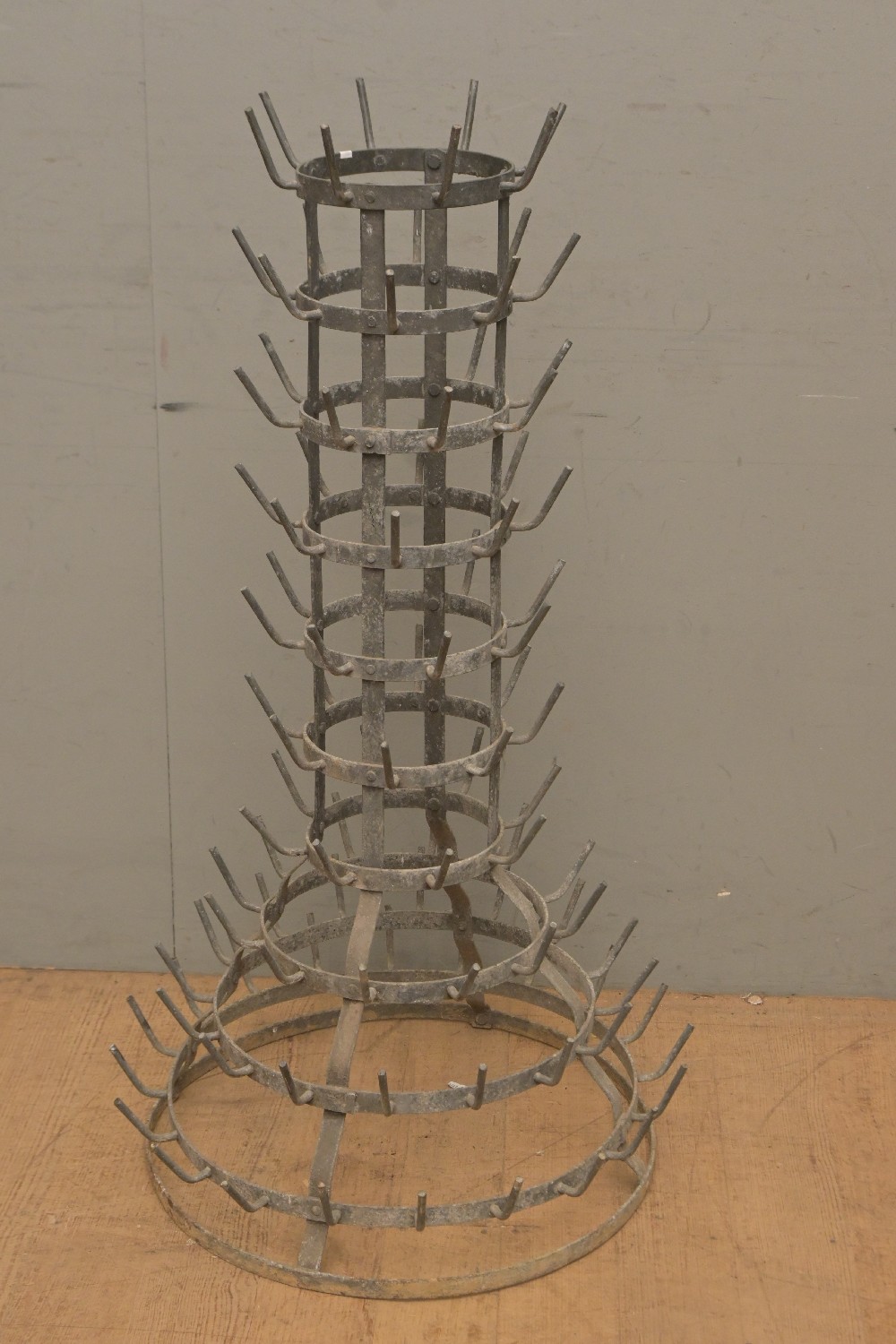 A FRENCH GALVANISED STEEL BOTTLE DRYING STAND (100H X 58 DIAM CM) (LEONARD JOEL DELIVERY SIZE: LARGE)