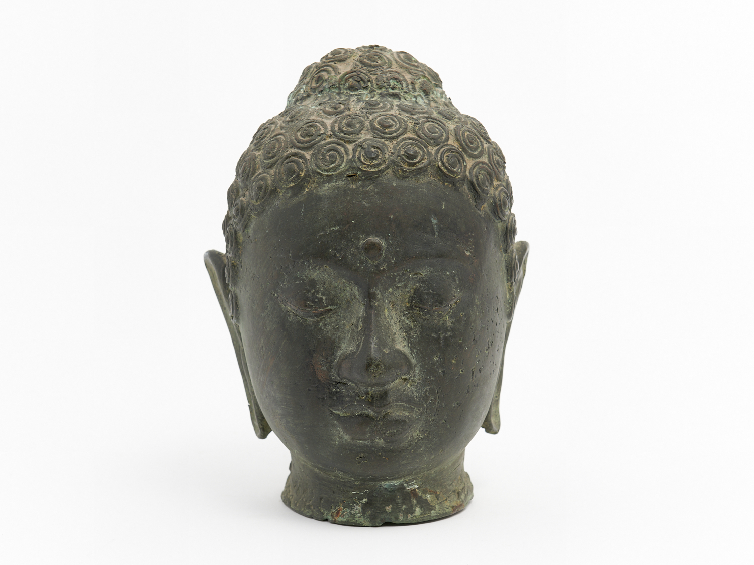 A BRONZE/CAST IRON BUDDHA HEAD H.24CM, LEONARD JOEL DELIVERY SIZE: SMALL