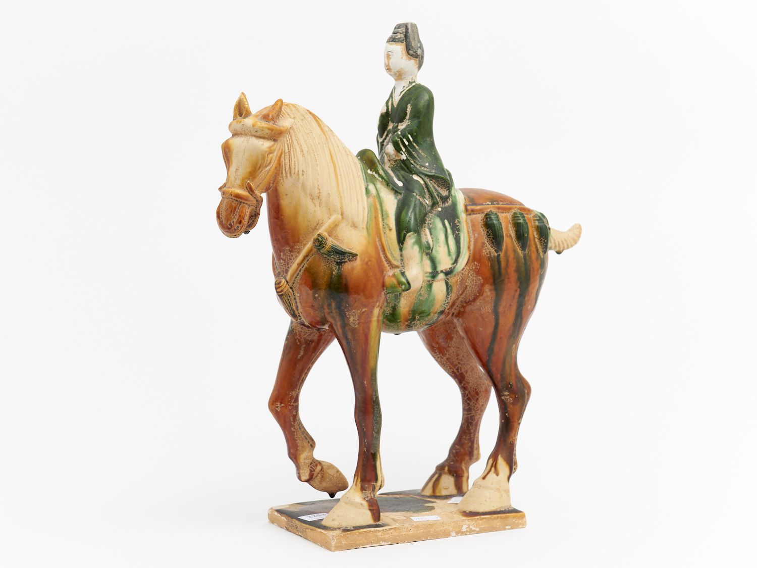 A TANG STYLE HORSE WITH A FEMALE RIDER H.40CM, LEONARD JOEL DELIVERY SIZE: MEDIUM