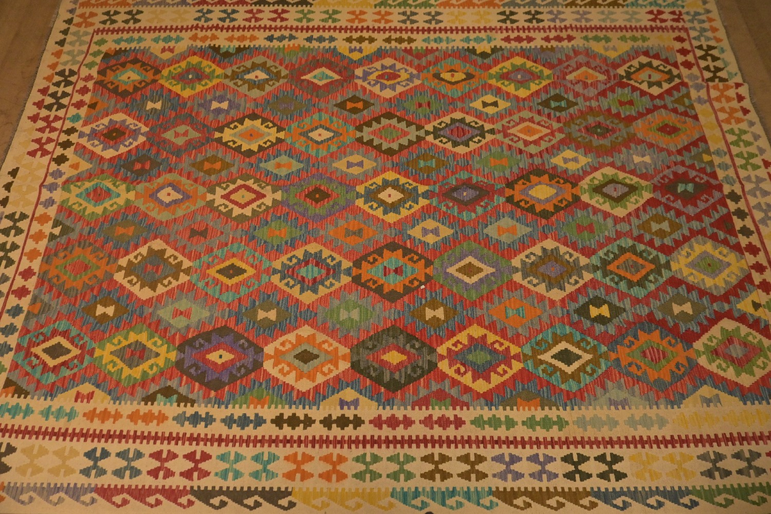 AN AFGAN KAZAK KILIM IN CAUCASIAN DESIGN VEGETABLE DYES, 100% PURE WOOL, ALL HAND WOVEN, REVERSIBLE (349 X 255 CM) (LEONARD JOEL DELIVERY SIZE: LARGE)