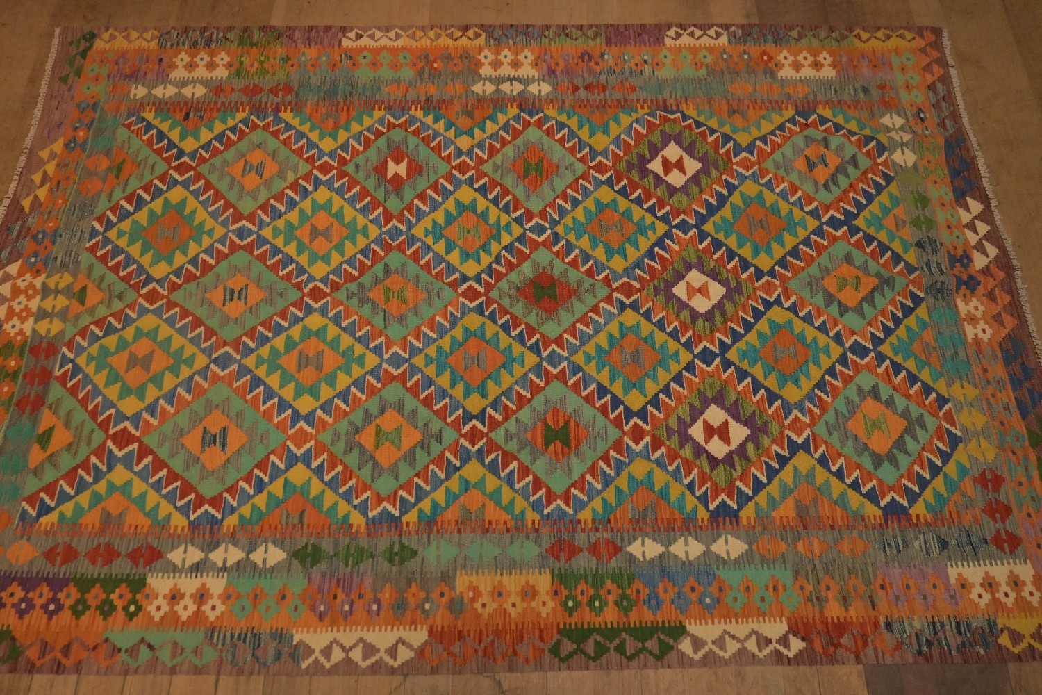 AN AFGAN KAZAK KILIM IN CAUCASIAN DESIGN VEGETABLE DYES, 100% PURE WOOL, ALL HAND WOVEN, REVERSIBLE (299 X 203 CM) (LEONARD JOEL DELIVERY SIZE: LARGE)