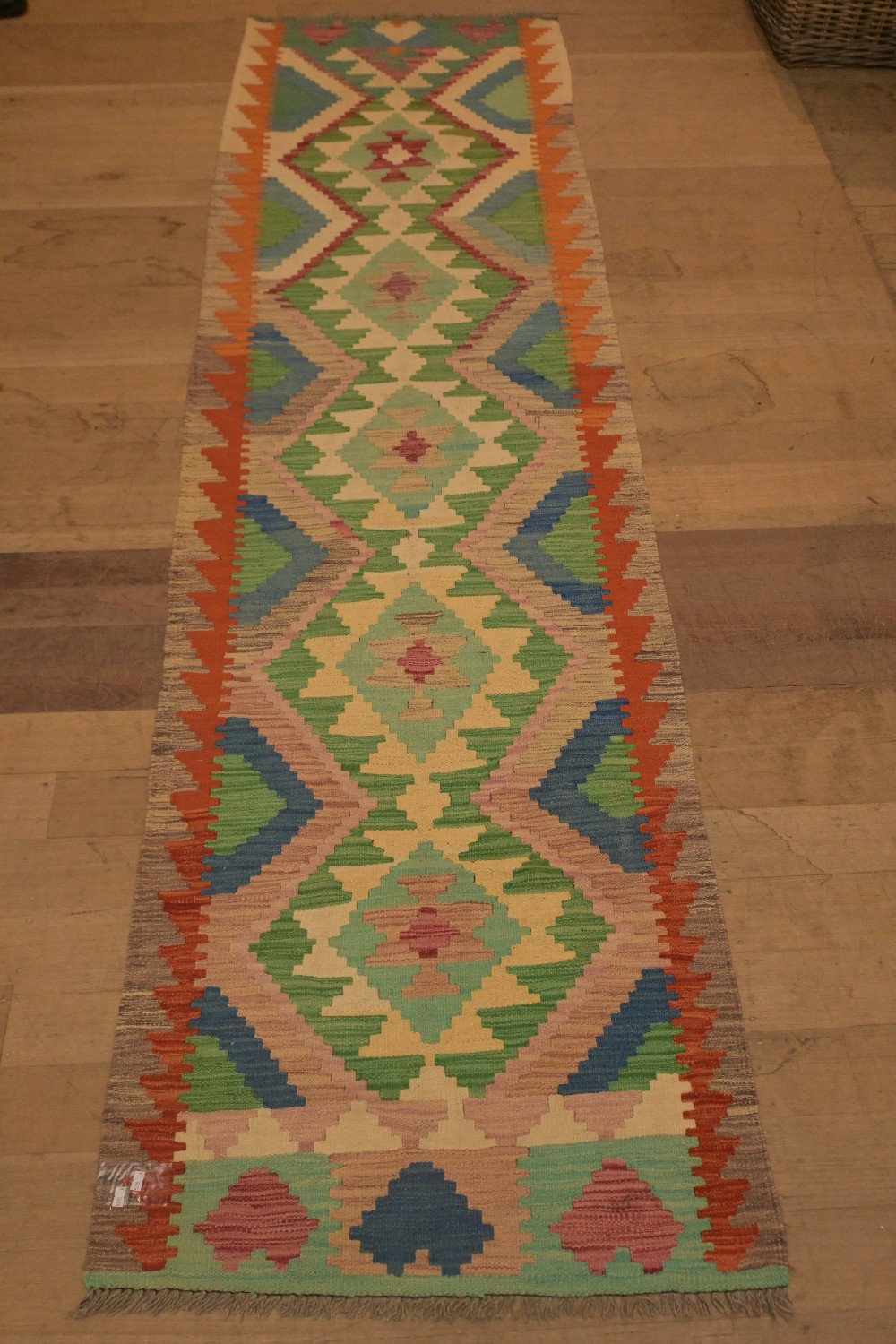AN AFGAN KAZAK KILIM IN CAUCASIAN DESIGN VEGETABLE DYES, 100% PURE WOOL, ALL HAND WOVEN, REVERSIBLE (300 X 81 CM) (LEONARD JOEL DELIVERY SIZE: LARGE)