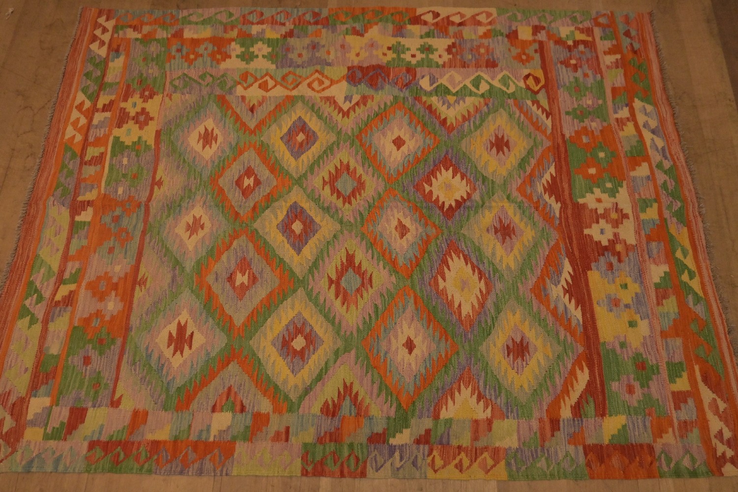 AN AFGAN KAZAK KILIM IN CAUCASIAN DESIGN VEGETABLE DYES, 100% PURE WOOL, ALL HAND WOVEN, REVERSIBLE (247 X 184 CM) (LEONARD JOEL DELIVERY SIZE: LARGE)