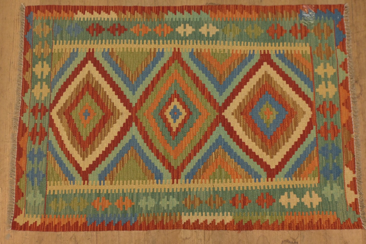 AN AFGAN KAZAK KILIM IN CAUCASIAN DESIGN VEGETABLE DYES, 100% PURE WOOL, ALL HAND WOVEN, REVERSIBLE (124 X 84 CM) (LEONARD JOEL DELIVERY SIZE: LARGE)