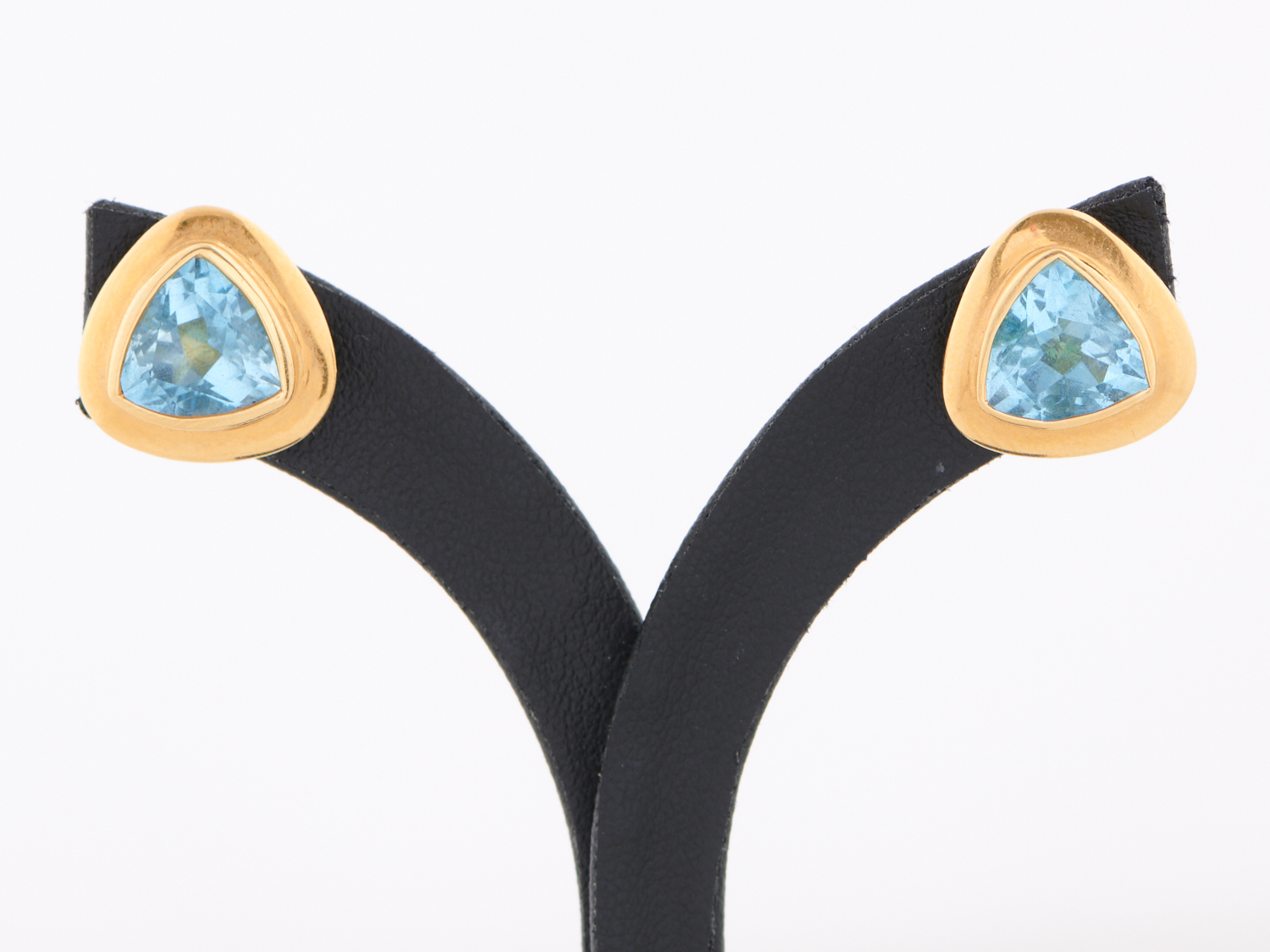 A PAIR OF TOPAZ EARRINGS IN 18CT GOLD, TO POST AND BUTTERFLY FITTINGS, 5.8GMS