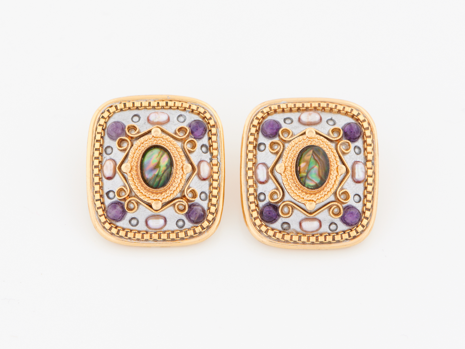 MICHAL GOLAN, A PAIR OF VINTAGE GEM SET IN GOLD TONE METAL, TO CLIP FITTINGS