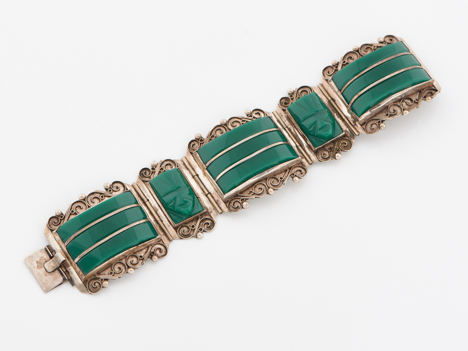 A VINTAGE AZTEC REVIVAL HARDSTONE BRACELET IN SILVER, 180MM