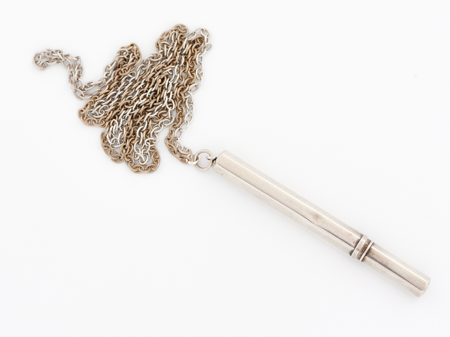 A VINTAGE SILVER CAPENTERS PENCIL AND CHAIN IN SILVER