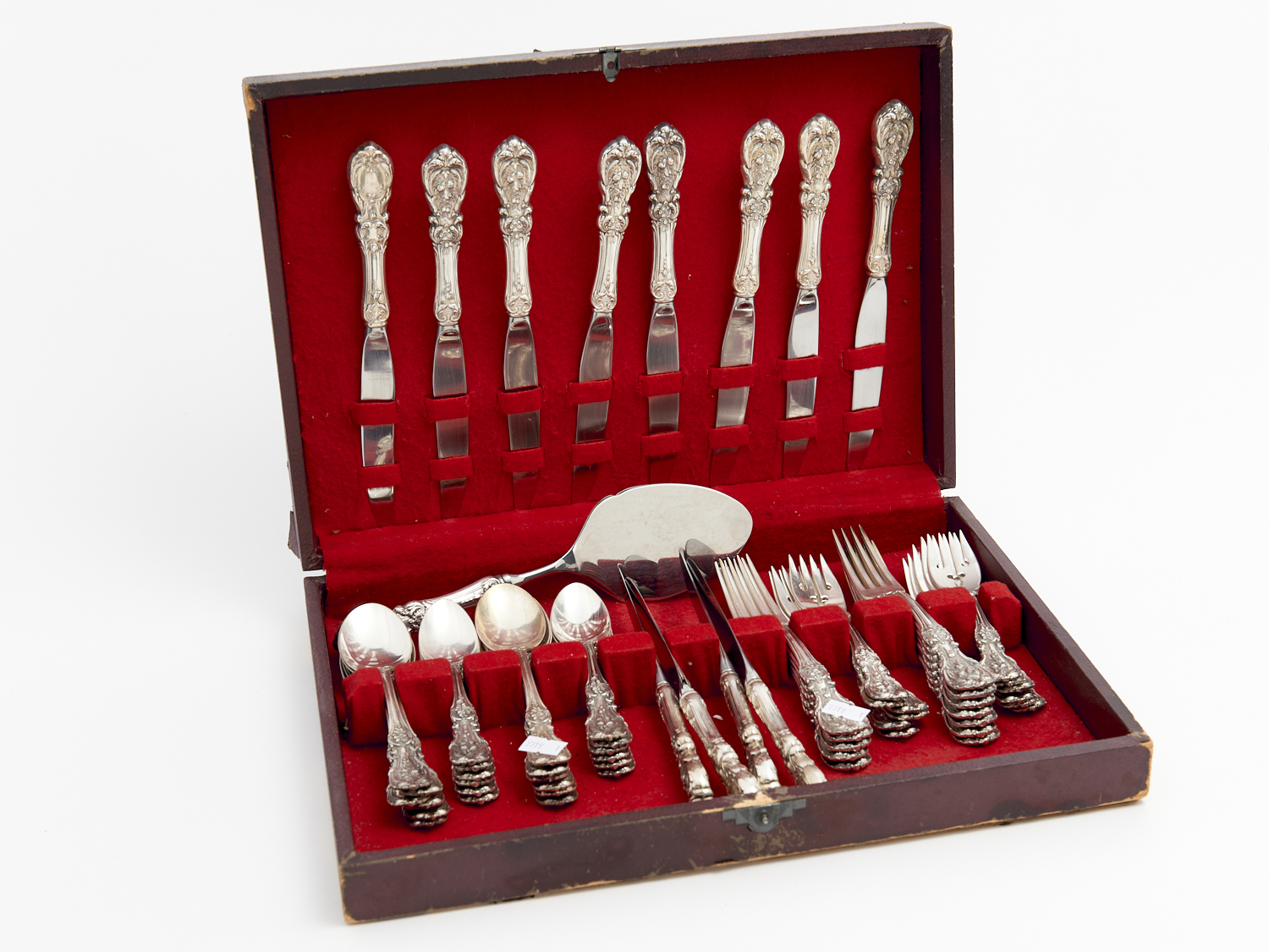 A STERLING SILVER REED & BARTON FRANCIS 1ST PATTERN CUTLERY SETTING, 2250G (EXCLUDING KNIVES) L.24.5CM (SERVER), LEONARD JOEL DELIVERY SIZE: SMALL