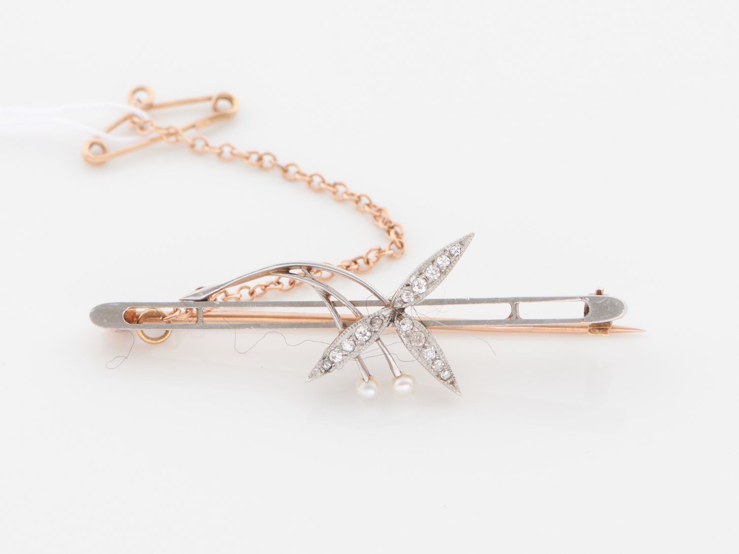 A DIAMOND AND SEED PEARL BROOCH IN PLATINUM, 45MM, 3.9GMS