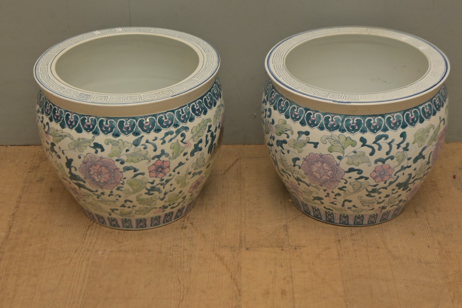 A PAIR OF CHINESE STYLE CERAMIC POTS (35H X 41DIAM CM) (LEONARD JOEL DELIVERY SIZE: LARGE)