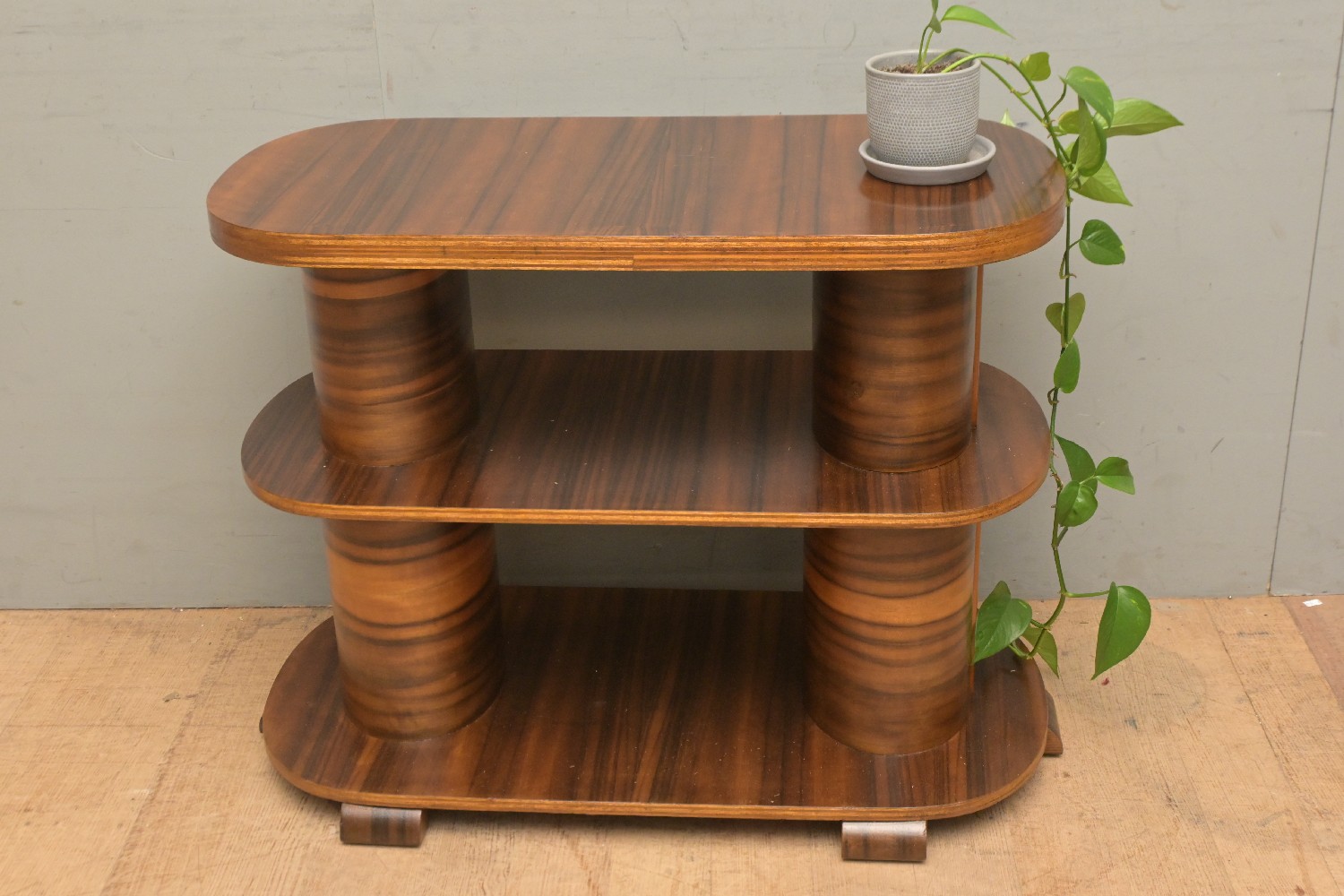 AN ART DECO WALNUT VENEERED THREE TIER HALL TABLE (69H X 87W X 42D CM) (LEONARD JOEL DELIVERY SIZE: LARGE)