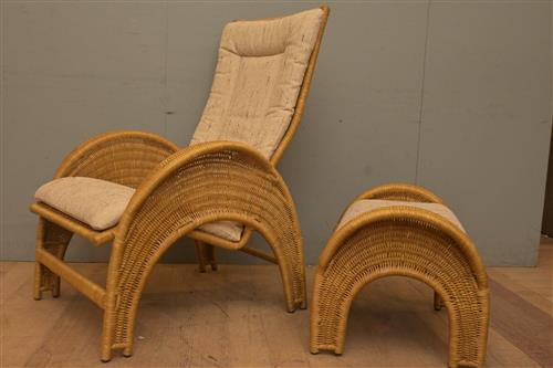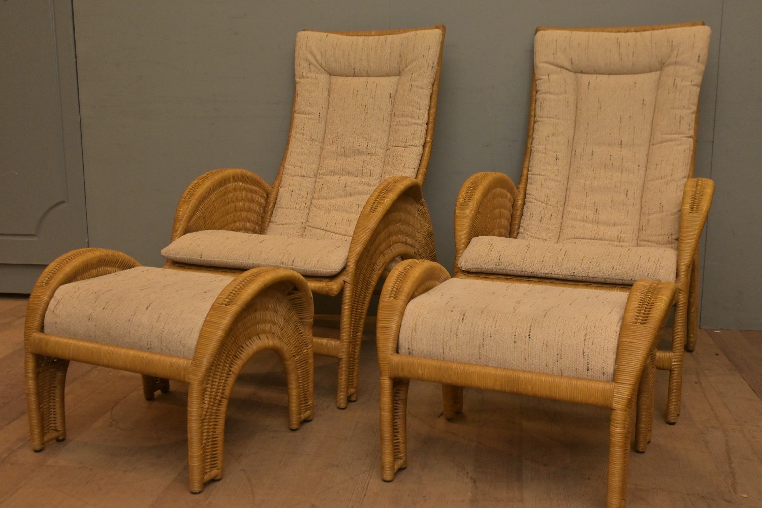 A PAIR OF CANE ARMCHAIRS WITH MATCHING FOOTSTOOLS (104H X 69W X 84D CM) (LEONARD JOEL DELIVERY SIZE: X-LARGE)