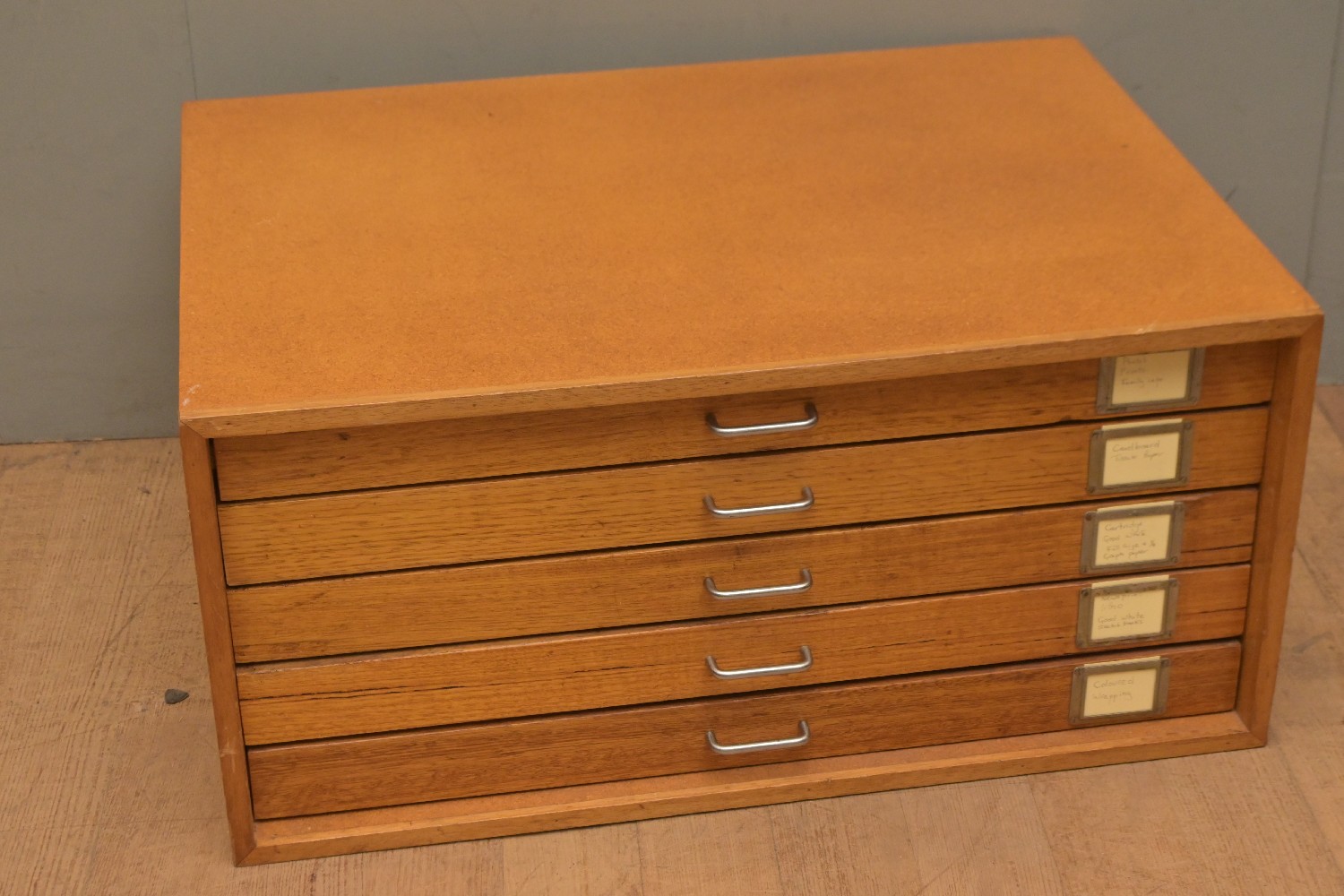 AN AUSTRALIAN ASH CHEST OF PLAN DRAWERS WITH A LATER COMPOSITE BOARD OUTER CASE (40H X 85W X 61D CM) (PLEASE NOTE THIS HEAVY ITEM MUST BE REMOVED BY CARRIERS AT THE CUSTOMER'S EXPENSE. LEONARD JOEL STAFF CANNOT ASSIST CARRYING THIS ITEM) (LARGE ITEM)