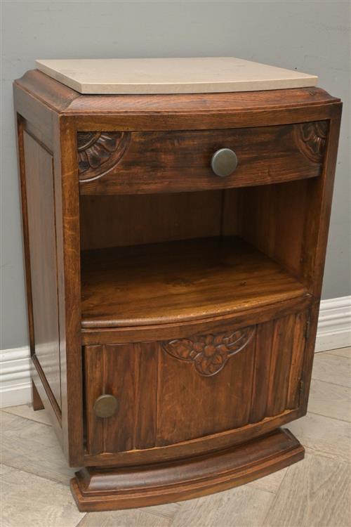 A FRENCH ART DECO OAK MARBLE TOPPED BEDSIDE (77H X 50W X 42D CM) (LEONARD JOEL DELIVERY SIZE: LARGE)