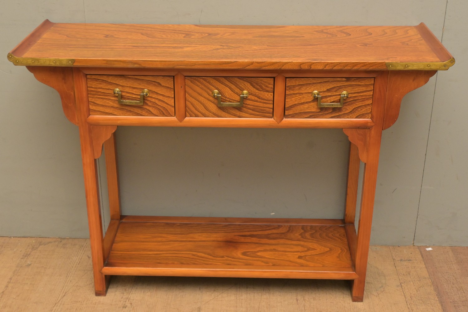 A CONTEMPORARY CHINESE ELM THREE DRAWER HALL TABLE (81H X 117W X 35D CM) (LEONARD JOEL DELIVERY SIZE: X-LARGE)