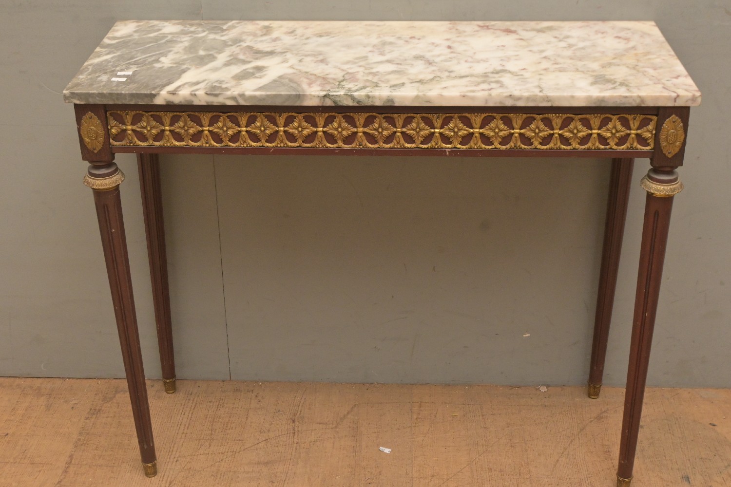 A FRENCH MARBLE TOP HALL TABLE (A/F) (76H X 93W X 35D CM) (LEONARD JOEL DELIVERY SIZE: X-LARGE)