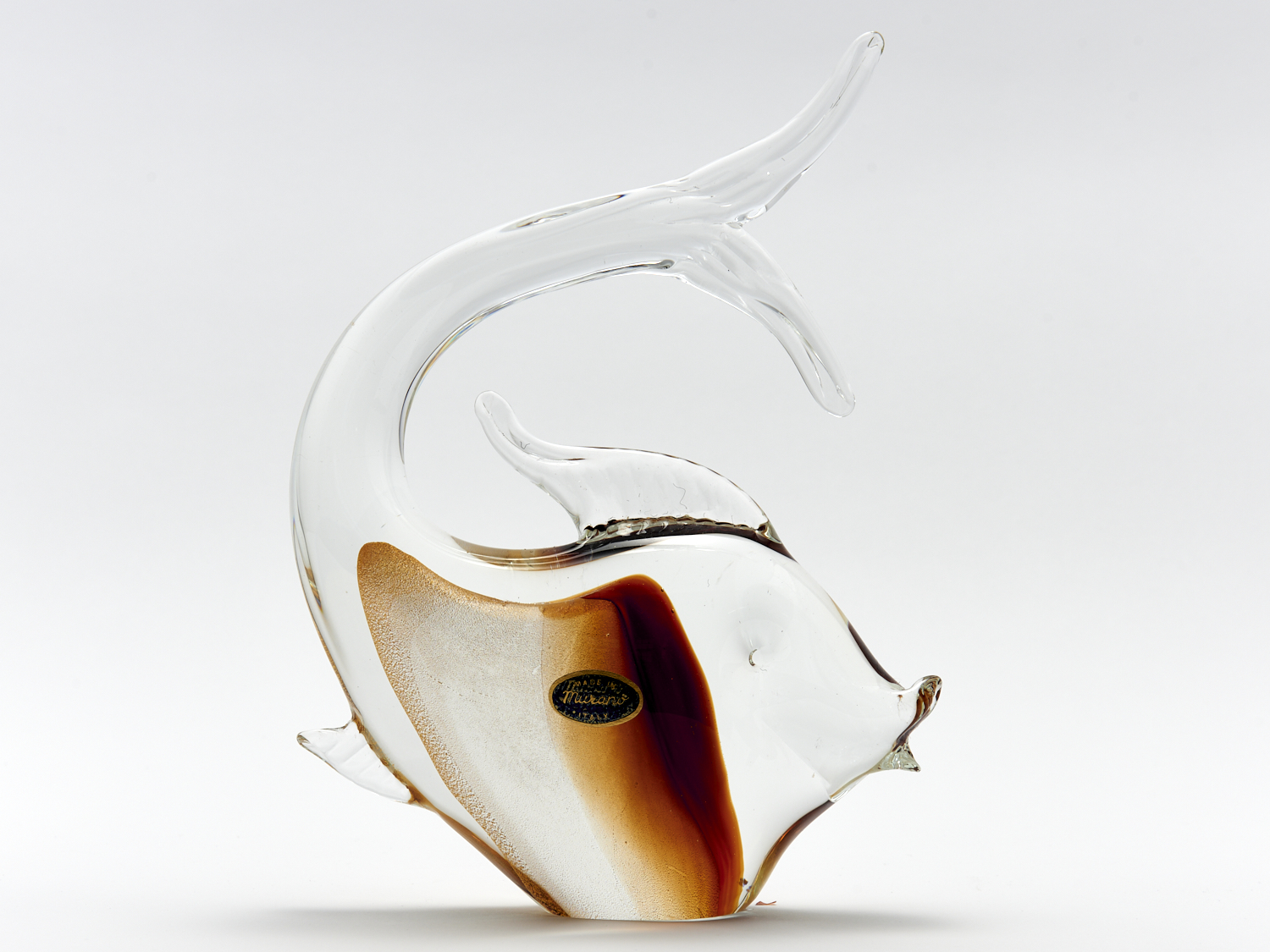 A 1960S MURANO GLASS FISH WITH ORIGINAL GOLD STICKER AND GOLD INCLUSIONS H.23CM, LEONARD JOEL DELIVERY SIZE: MEDIUM