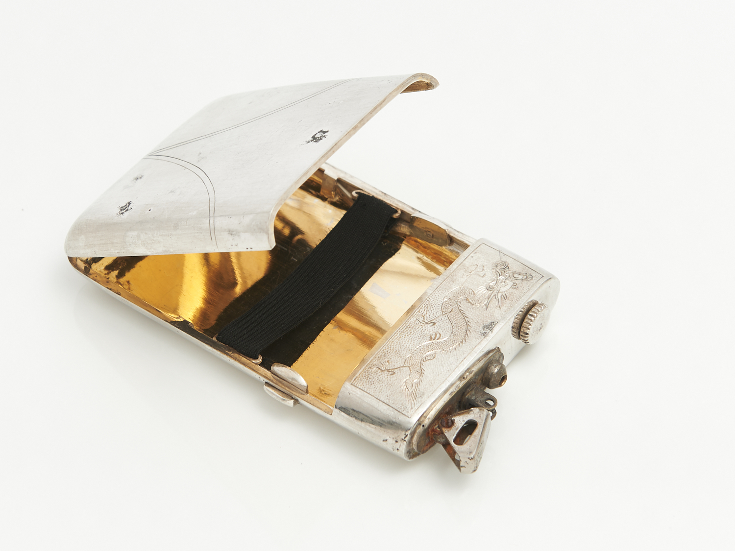 A CHINESE HALLMARKED STERLING SILVER CIGARETTE CASE AND LIGHTER 113G L.10CM, LEONARD JOEL DELIVERY SIZE: SMALL