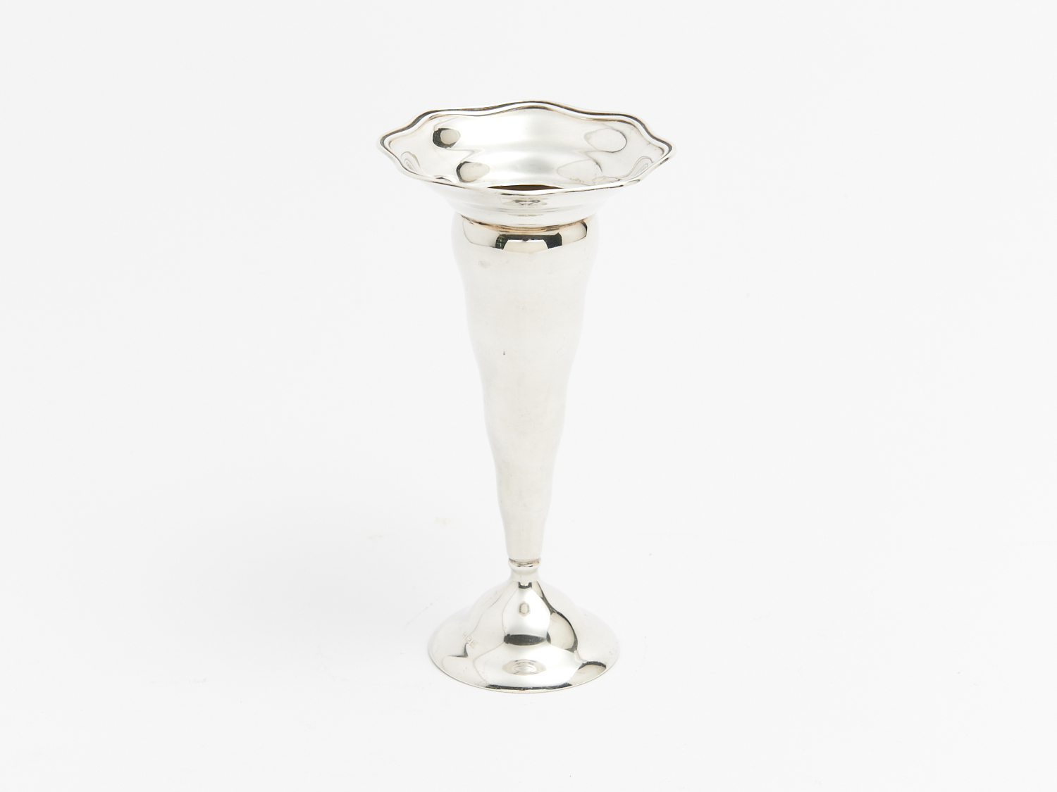 A HALLMARKED STERLING SILVER TRUMPET SHAPED VASE 122G H.15.5CM, LEONARD JOEL DELIVERY SIZE: SMALL
