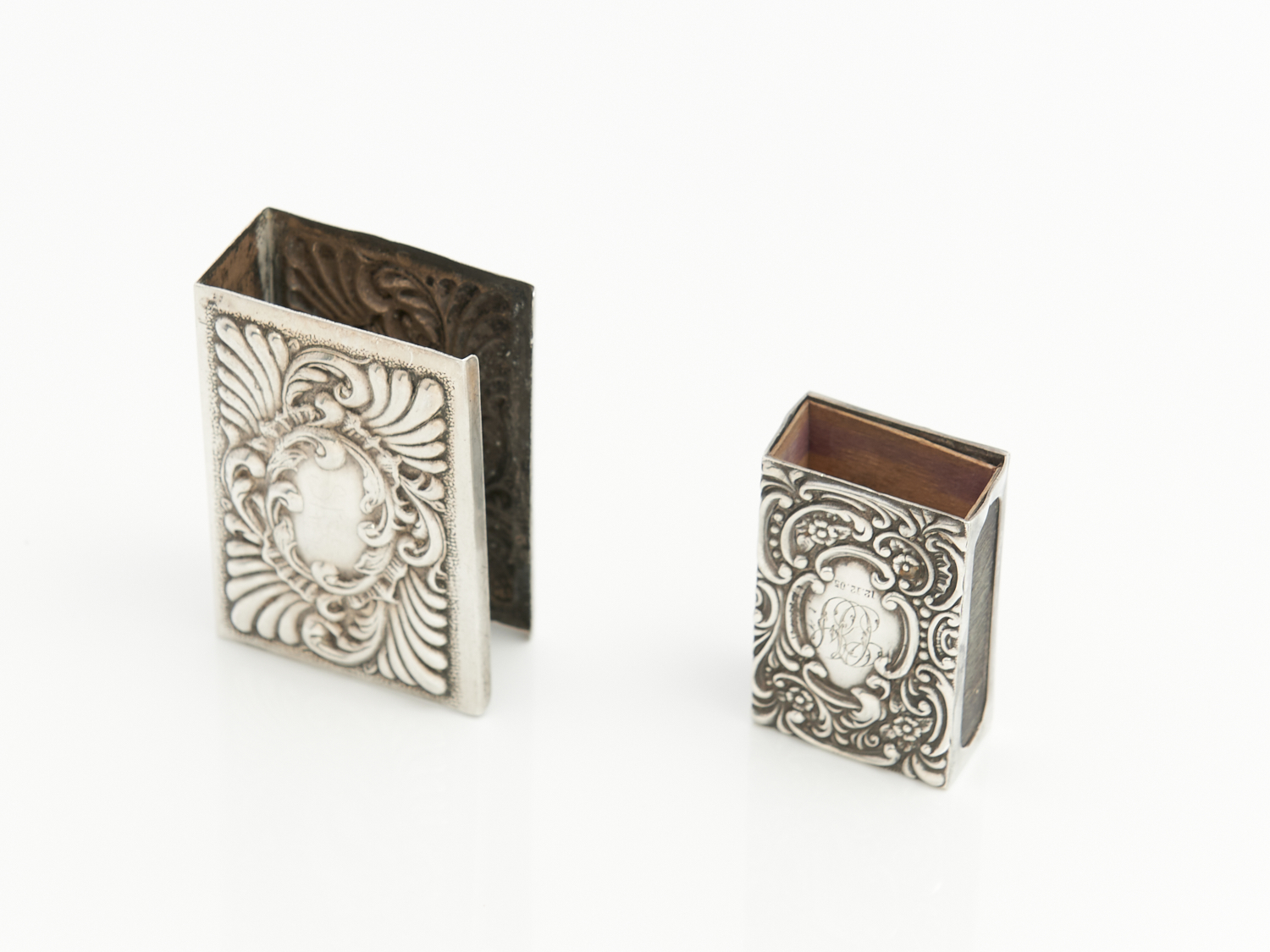 TWO ENGLISH HALLMARKED STERLING SILVER FLORAL DECORATED VESTA CASES L.6CM (LARGEST), LEONARD JOEL DELIVERY SIZE: SMALL