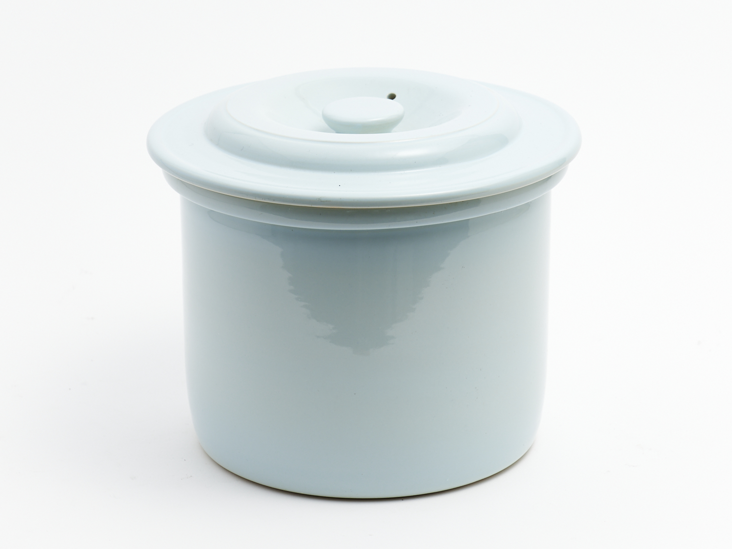 AN EARLY 20TH CENTURY AUSTRALIAN FOWLER LTD BLUE LIDDED BREAD CROCK H.21.5CM, LEONARD JOEL DELIVERY SIZE: SMALL