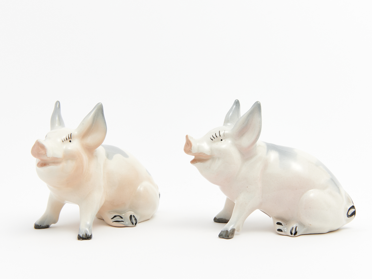 A PAIR OF ENGLISH BESWICK SIGNED PIG FIGURES L.13CM (EACH), LEONARD JOEL DELIVERY SIZE: SMALL