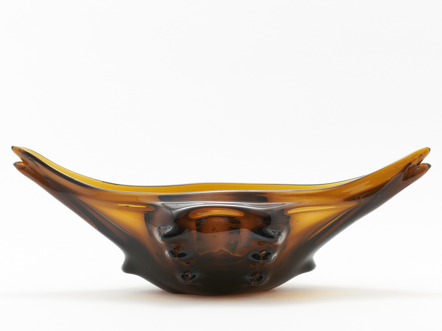 AN ITALIAN DEEP GREEN ORGANIC-FORM GLASS CENTREPIECE BOWL L.42CM, LEONARD JOEL DELIVERY SIZE: MEDIUM