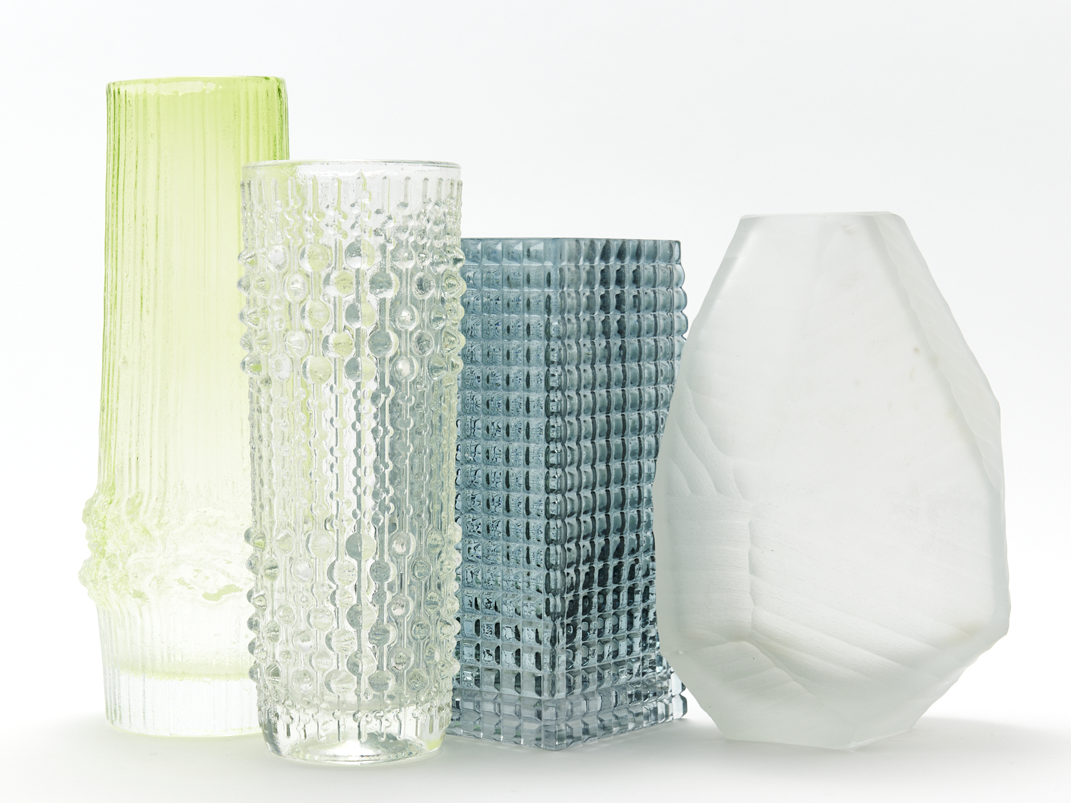 A GROUP OF FOUR 1950S SWEDISH AND ITALIAN GLASS VASES IN ICEBERG STYLE DECORATION H.26.5CM (TALLEST), LEONARD JOEL DELIVERY SIZE: MEDIUM