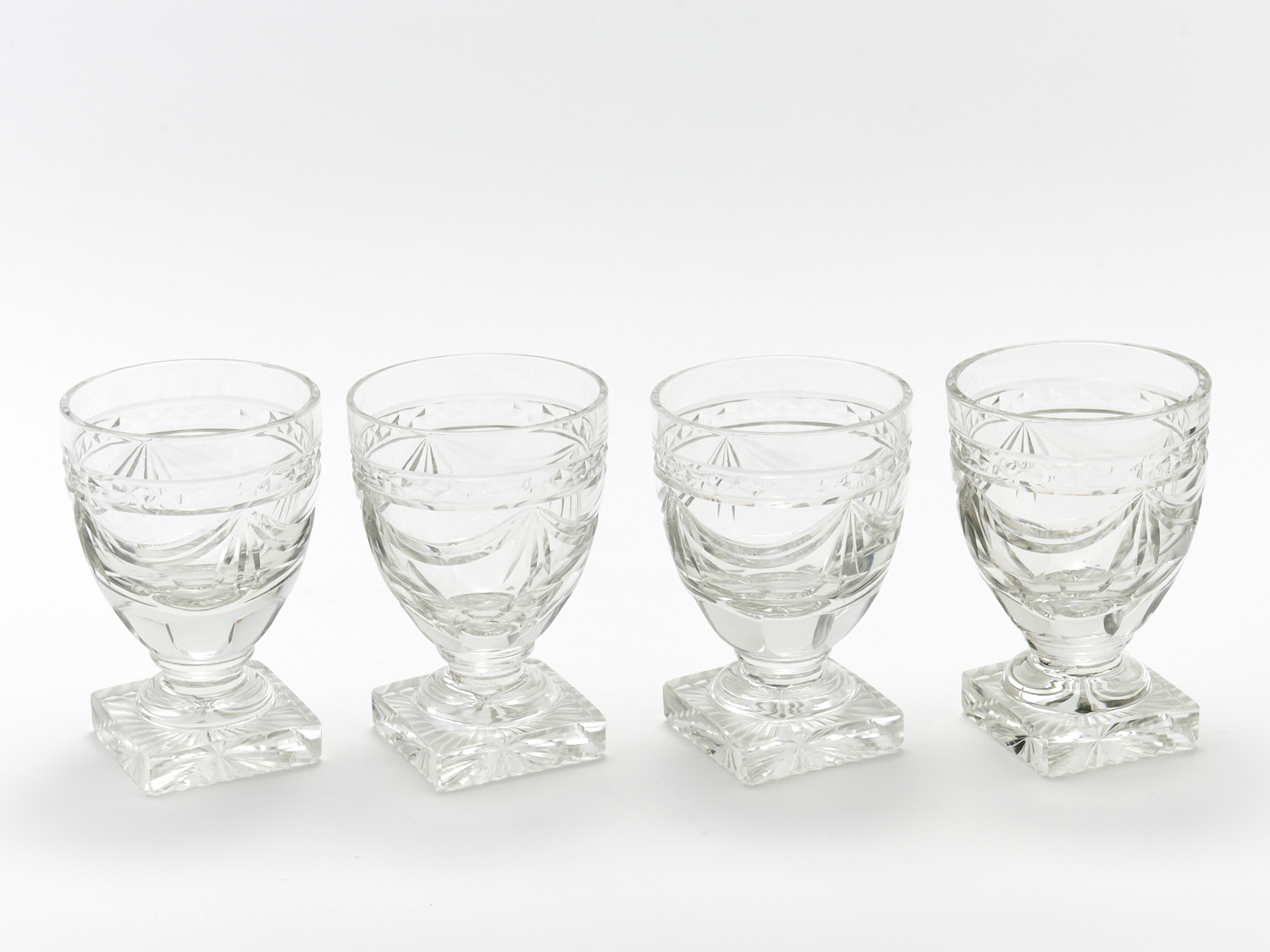 A SET OF FOUR GEORGIAN LEMON SQUEEZE BASED CRYSTAL RUMMERS H.12.5CM, LEONARD JOEL DELIVERY SIZE: MEDIUM