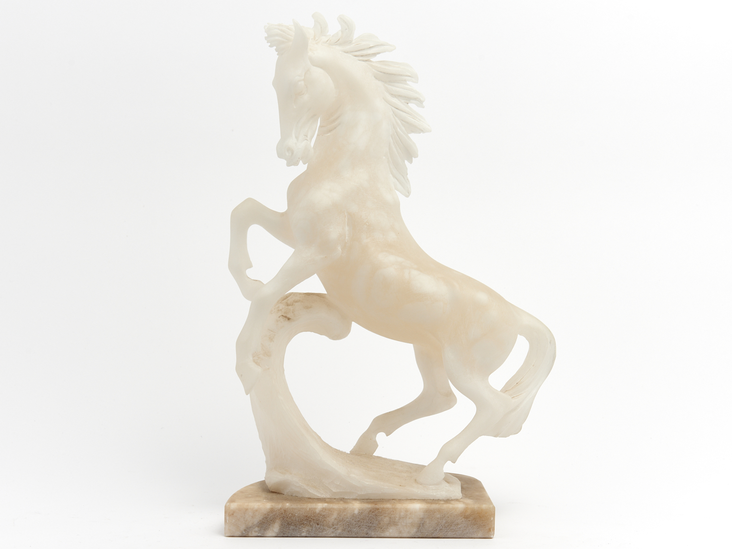 A CARVED MARBLE FIGURE OF A REARING HORSE H.41CM, LEONARD JOEL DELIVERY SIZE: MEDIUM
