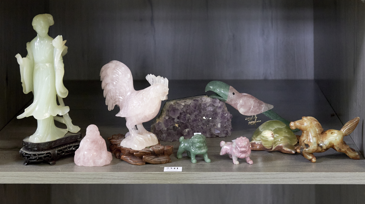 A COLLECTION OF CHINESE STONE FIGURES 21.5CM (TALLEST), LEONARD JOEL DELIVERY SIZE: MEDIUM