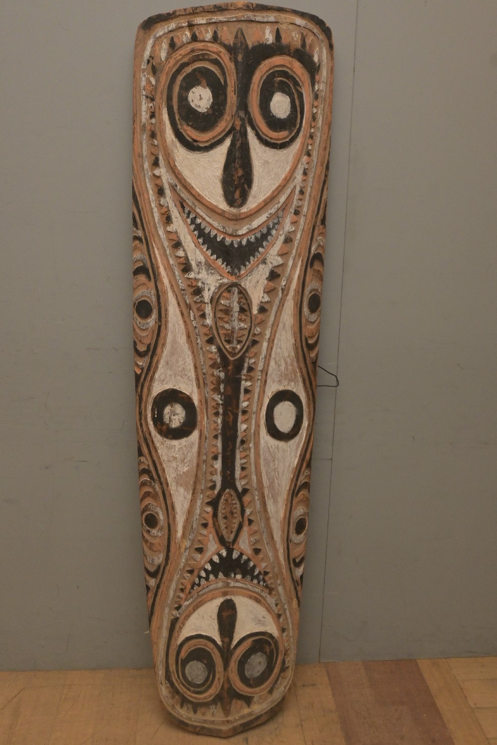 AN IMPRESSIVE SHIELD FROM PAPUA NEW GUINEA (174H X 48W CM) (LEONARD JOEL DELIVERY SIZE: X-LARGE)