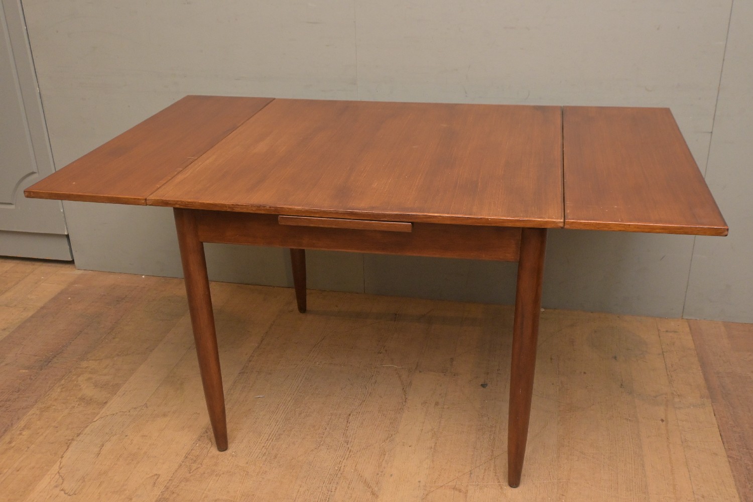A MID-CENTURY TEAK SQUARE TOP DINING TABLE WITH DRAW LEAFS (A/F) (75H X 152W X 90D CM) (PLEASE NOTE THIS HEAVY ITEM MUST BE REMOVED BY CARRIERS AT THE CUSTOMER'S EXPENSE. LEONARD JOEL STAFF CANNOT ASSIST CARRYING THIS ITEM) (LARGE ITEM)