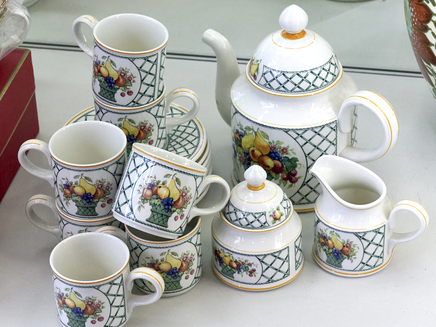A PART VILLEROY AND BOCH COFFEE SET WITH BASKET PATTERN MOTIF H.21CM (TEAPOT), LEONARD JOEL DELIVERY SIZE: MEDIUM