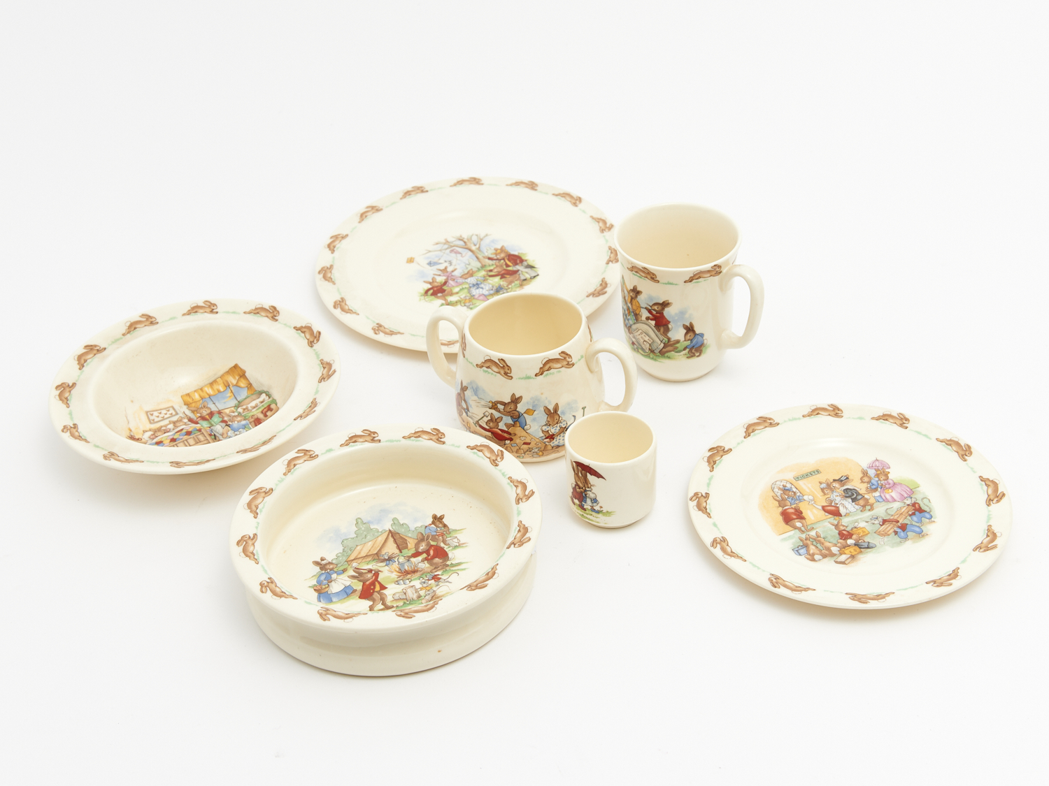 SIX PIECES OF ROYAL DOULTON BUNNYKINS PORCELAIN DIA.20CM (LARGEST) LEONARD JOEL DELIVERY SIZE: SMALL