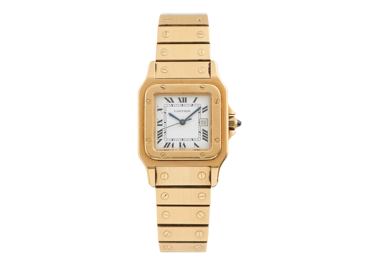 Closure: Cartier fitted 18ct gold link bracelet with gold rivets and folding clasp
