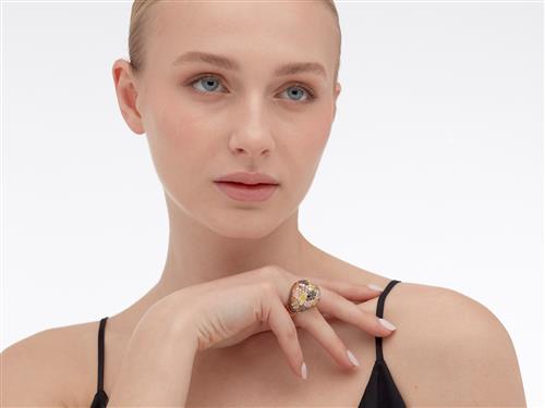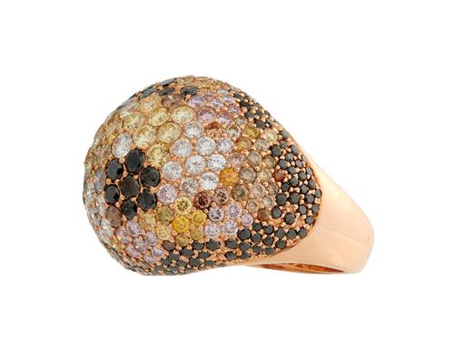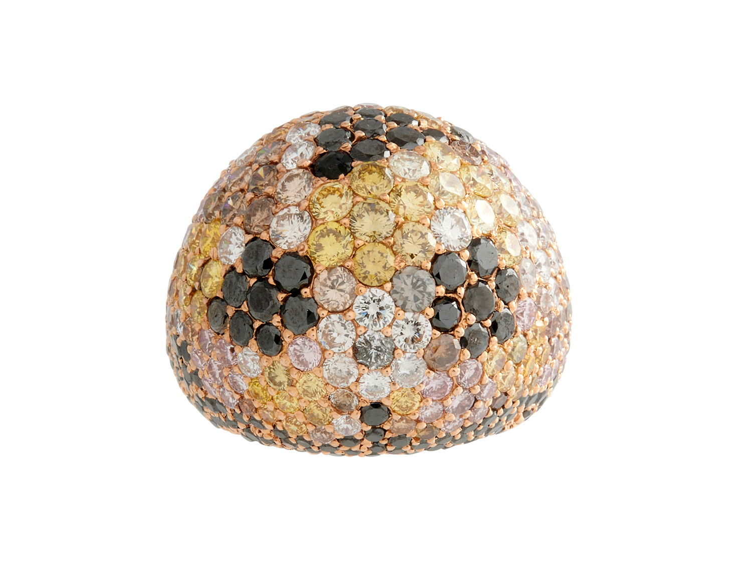 Of bombe design, pavé-set throughout with colourless and multicoloured brilliant-cut diamonds, size L.