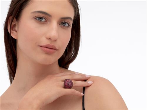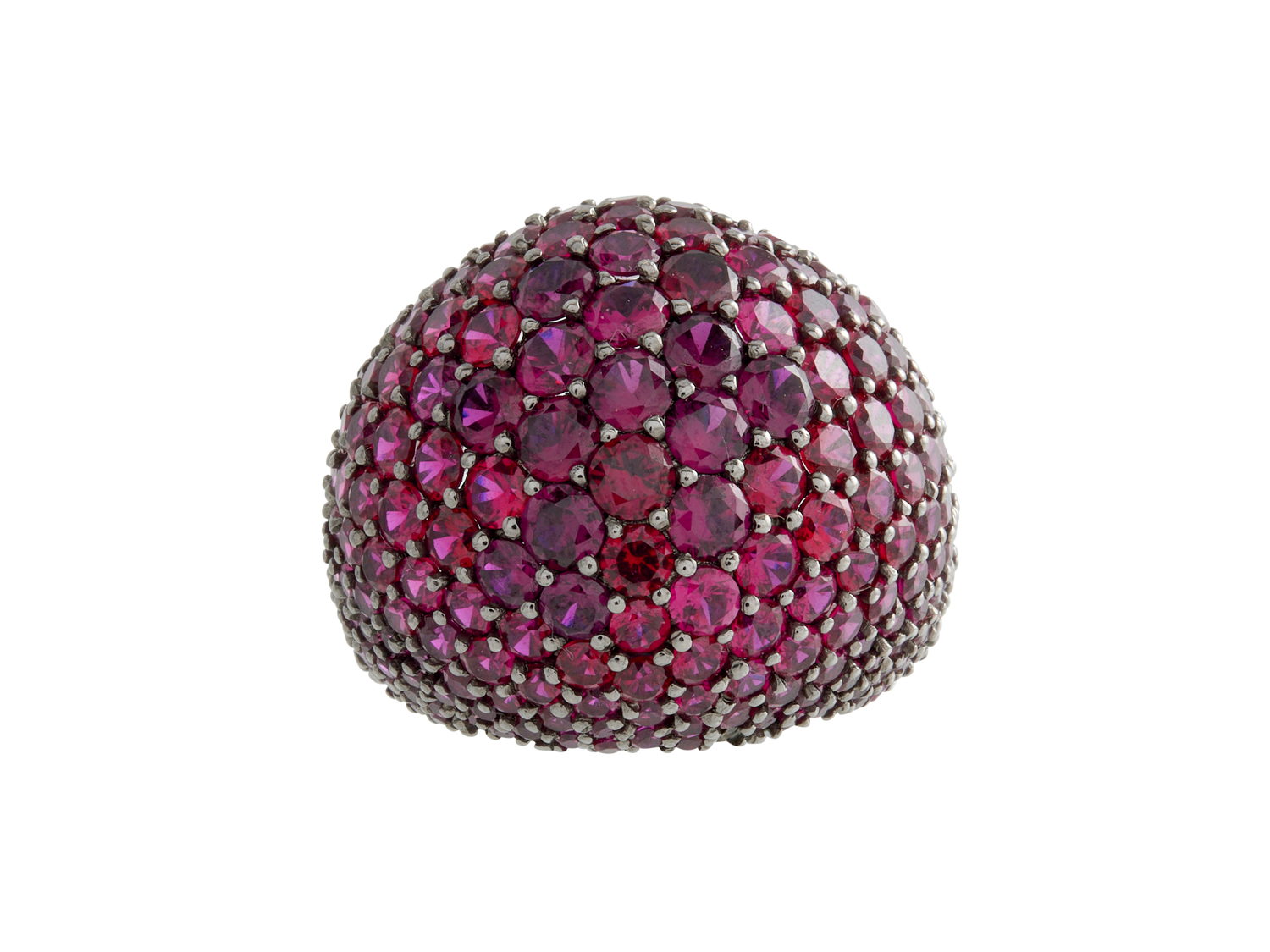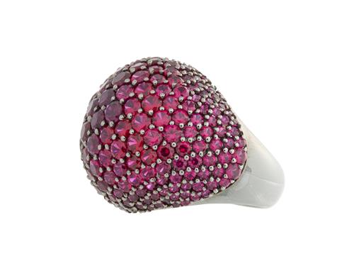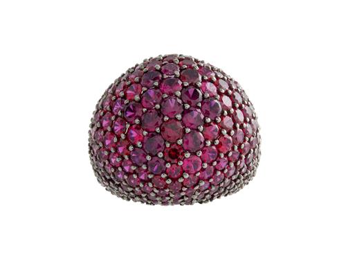 Of bombe design, pavé-set throughout with circular-cut synthetic rubies, size M.