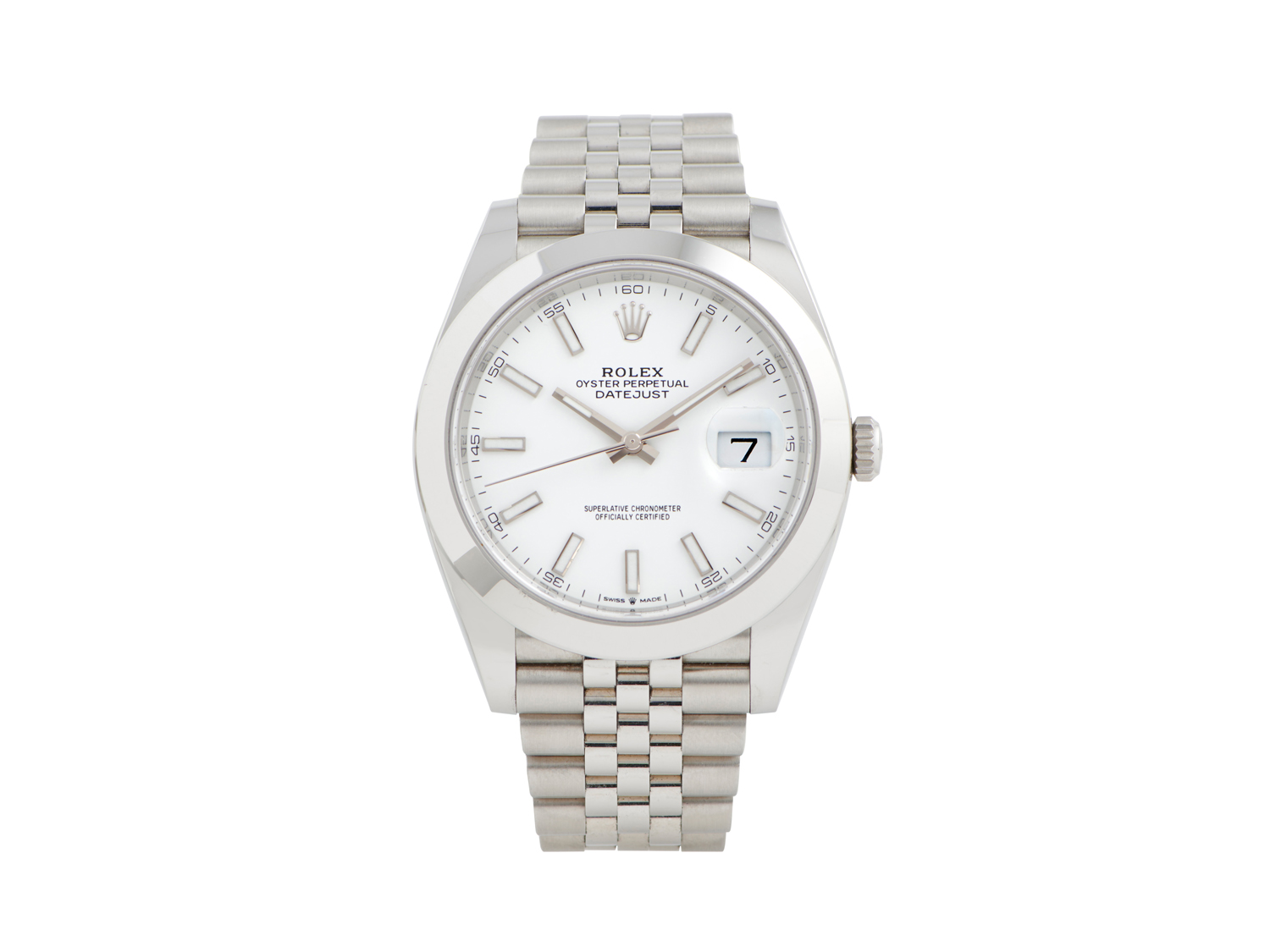 Dial: silvered, applied baton hour markers, magnified date aperture at 3