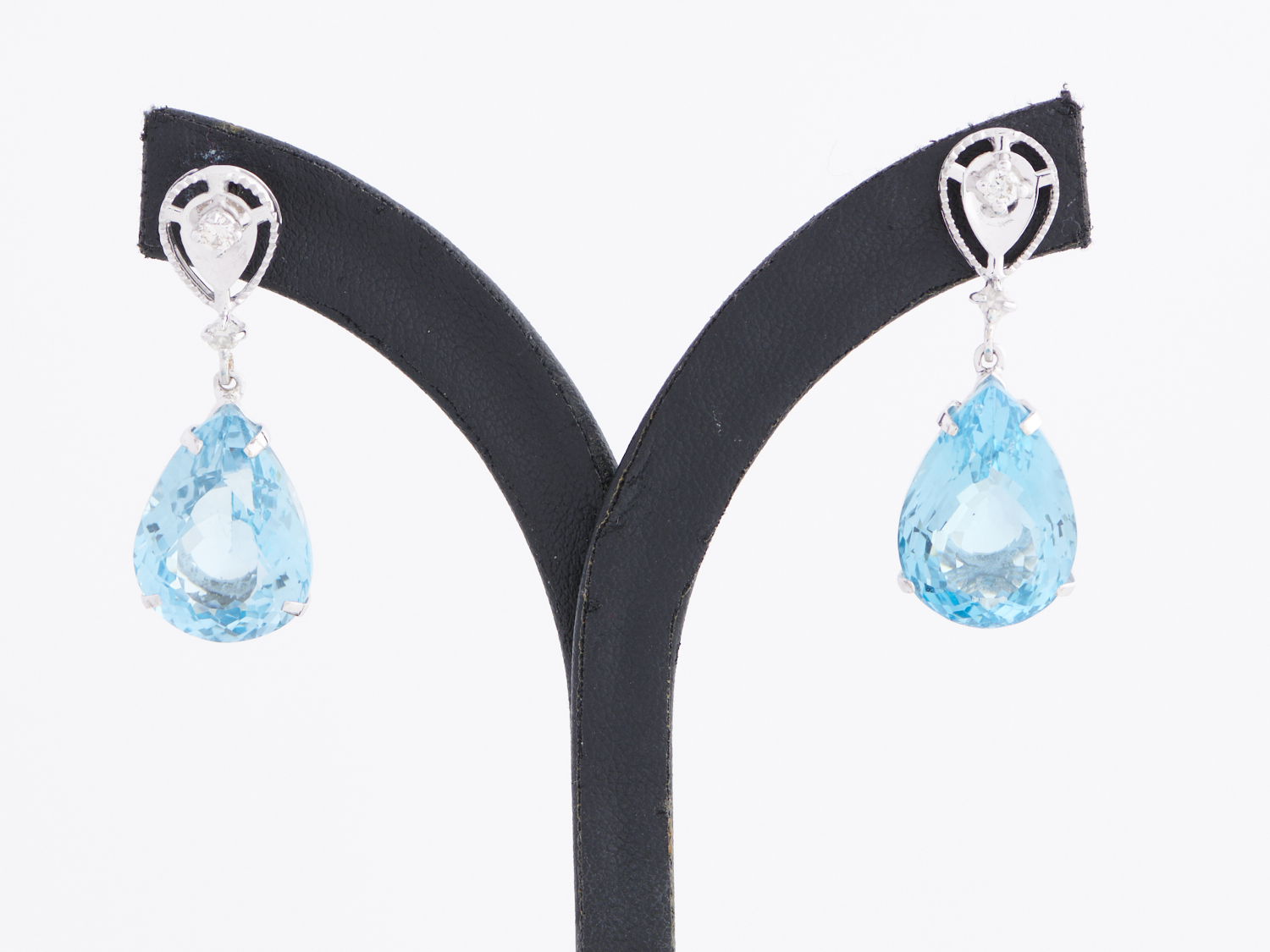 A PAIR OF TOPAZ AND DIAMOND EARRINGS IN 18CT WHITE GOLD, THE TOPAZ TOTALLING 35.38CTS, DIAMONDS TOTALLING 0.15CTS, TO POST AND BUTTERFLY FITTINGS