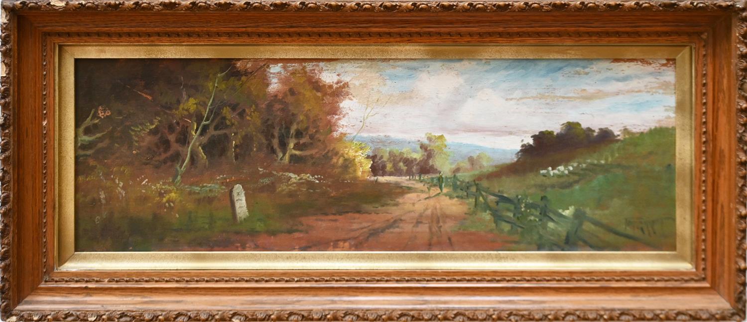 PRO HART, (LANDSCAPE), OIL ON BOARD, SIGNED LOWER RIGHT, 17 X 42CM, FRAME SIZE: 36 X 61CM