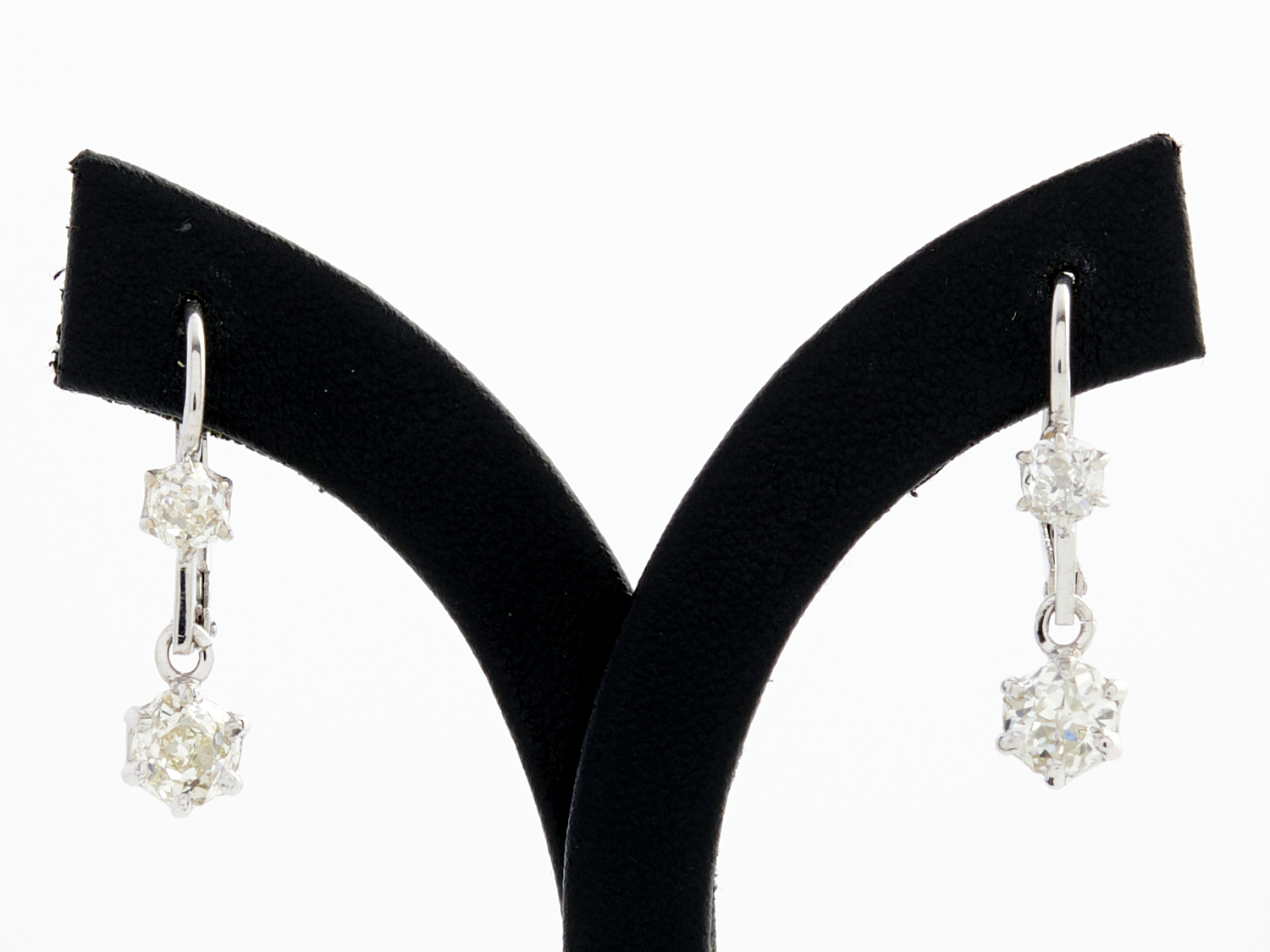 A PAIR OF OLD EUROPEAN CUT DIAMOND EARRINGS IN 18CT WHITE GOLD, THE DIAMONDS TOTALLING 2.58CTS, TO CONTINENTAL FITTINGS, ACCOMPANIED BY A VALUATION