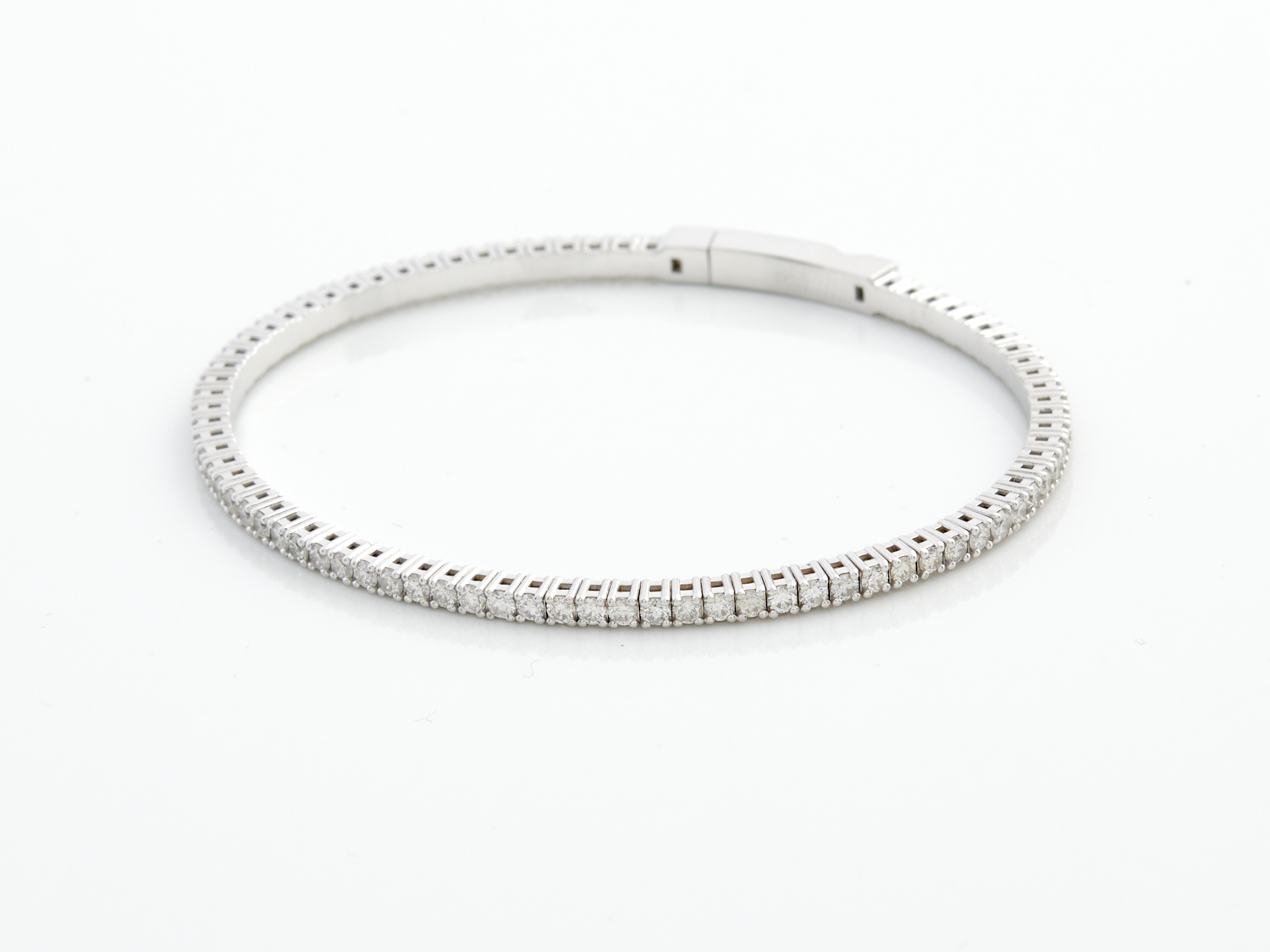 A DIAMOND BANGLE IN 18CT WHITE GOLD, THE DIAMONDS TOTALLING 2.88CTS, G, SI, INNER DIAMETER APPOXIMATELY 55MM