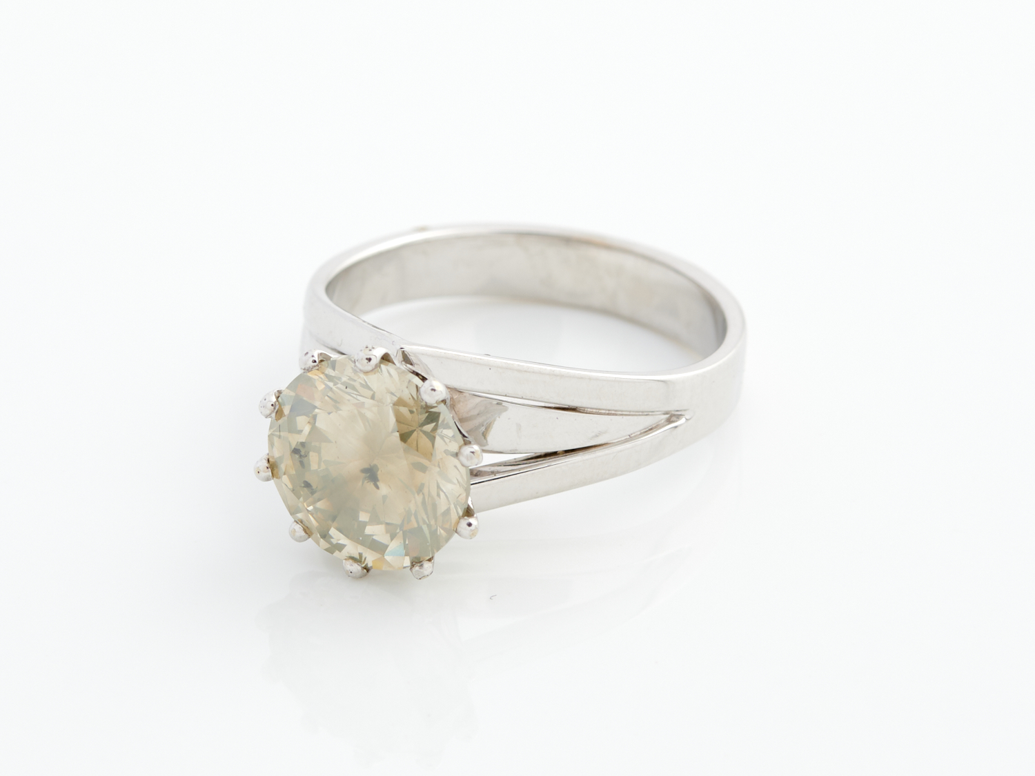 A DIAMOND SOLITAIRE RING IN 12CT WHITE GOLD, THE DIAMOND WEIGHING 3.05CTS, SIZE M, 4.4GMS